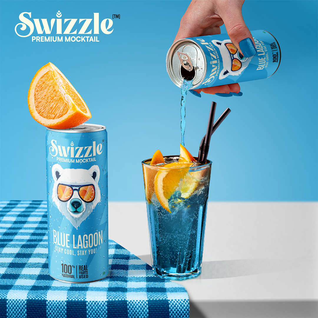 Blue Lagoon (Blue Mojito): Carbonated RO Water, Cane Sugar, Valencia Orange (sourced from South Africa / Egypt), Mint, Cinnamon, Lemon Zest, Food Color, Lemon Juice Concentrate, Stabilizers, Acidity Regulators.